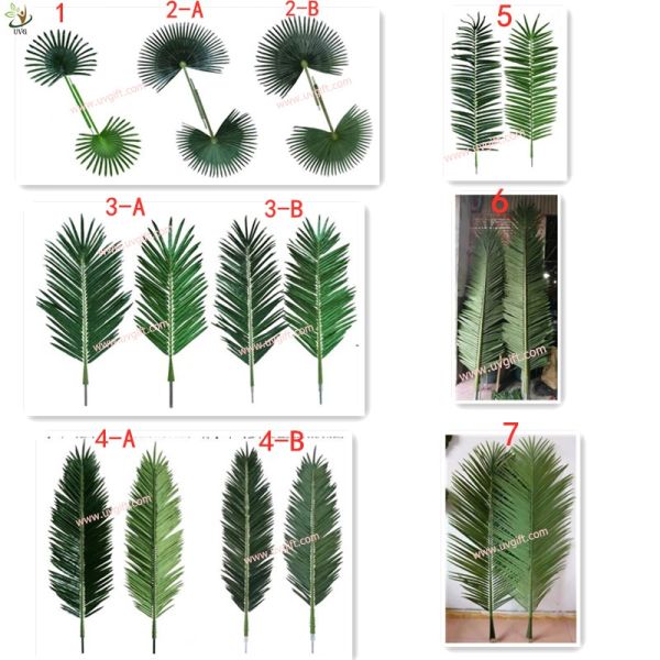 There are 7 kinds of available artificial palm tree leaves, which included indoor and outdoor quality separately.